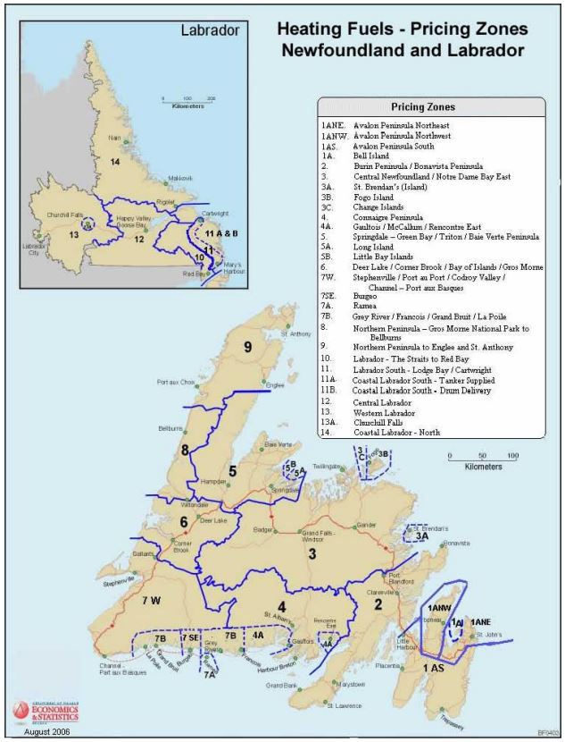 The Board is permitted to divide the Province into zones. In establishing the zones in the Province the Board is required to consider historical prices throughout the Province and the factors which may explain differences in these prices, including transportation costs, volume of sales, storage costs, distribution costs and inventory rates. The pricing zones for motor fuels and heating fuels are not the same. The Base Zone for motor fuel is Zone 1 and the Base Zone for heating fuel is Zone 1ANE.
